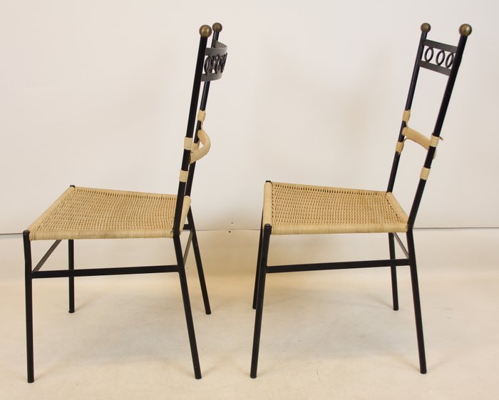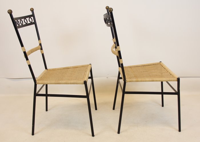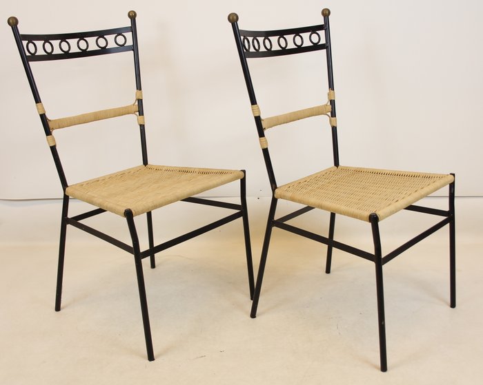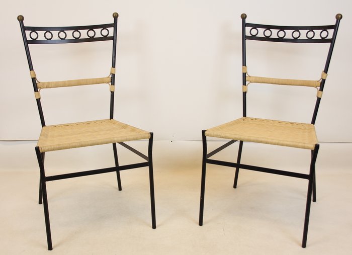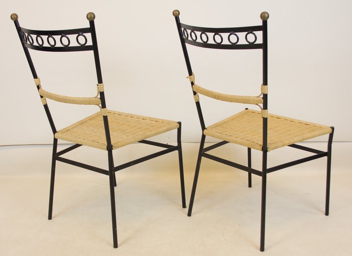 Pareja de Sillas de Hierro y Mimbre
